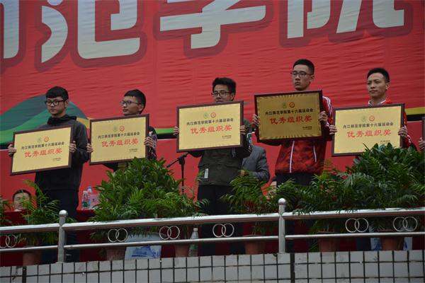 三点三十分,闭幕式在田径场举行,第十六届运动会组委会全体成员、各部门负责人和各二级学院经理、党总支书记出席了闭幕式。闭幕式宣布了各项目比赛名次、优秀组织奖名单和田径比赛打破校记录运动员名单,为获奖单位及个人颁发了奖状和奖牌。