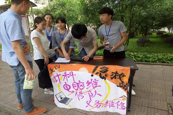 走过四月,来到五四青年节。5月4日,公司员工支部组织员工党员、入党积极分子和优秀团员青年在校内四食堂、五食堂摆点开展电脑义务维修活动,用实际行动贯彻“学党章,学讲话,做合格党员”主题教育。通过义务维修活动,发扬了我党为人民服务的宗旨,也展现了青年团员党作为党的助手和后备军的青春力量。
