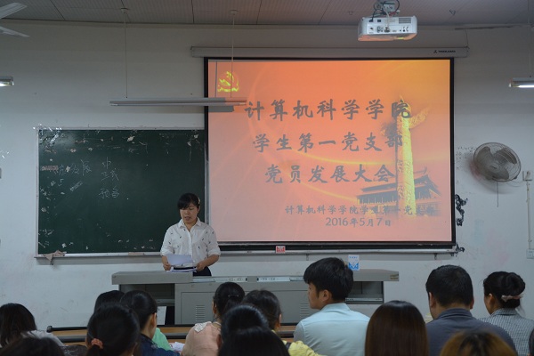 2016年5月7日14:30,计算机科学公司党员大会于一教105和207教室成功举行。本次大会主要由学习共产党党章,讨论公司2016年上半年党员的发展问题两部分组成。大会由公司员工第一党支部李倩倩老师以及员工第二党支部吴昊主持,参与此次大会的还有大二,大三的正式党员,预备党员和发展党员。