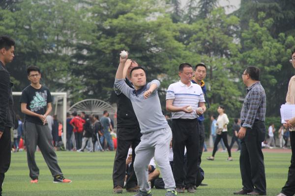 比赛伊始,各学院老师谈笑风生,讨论着该用怎样的姿势掷球。老师们做了充分的热身运动之后,由裁判点名。接着,老师们按编号拍成一列纵队。在排队上场时,公司的周舜,张利强老师在认真观看之前教工运动员比赛,也在手中不断演练抛掷动作要领,并积极进行热身运动,调整好赛前的状态。两位老师容光焕发,精神抖擞,期望着能在这一年一度的盛世中展现自我。14:30比赛正式开始,他们依次走入赛场,柔美的动作而不乏有力的爆发,诠释了什么才是真正的暴力美学。比赛程度之激烈,观众热情之高昂,使周围的空气都变得十分紧张。赛场上,两位老师从容不迫,都拿出十二分的热情对待此次比赛。背对球场、压低身体、迅速转身,铅球呈弧形抛出。在这场力量与技巧的综合较量中,两位老师都以良好的状态和精准的投掷,最终不负众望,为计科学院再添一份荣誉。