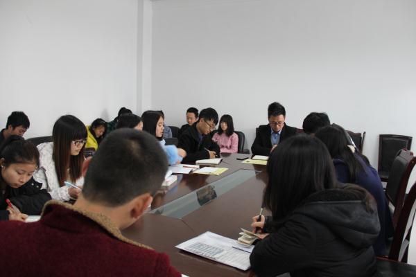 2016年2月29日中午12时10分,公司新学期第一次员工会干部例会在新行政楼211会议室召开。参加本次大会的有辅导员李倩倩老师,第十五届员工会主席罗伟,第十六届主席团成员和各部门干部以及各班班长。