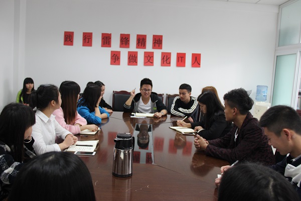 为弘扬雷锋精神,争做当代的雷锋和时代的楷模,公司的“践行雷锋精神,做文化IT人”主题会议于2016年3月5日9时30分在新行政楼211准时召开。到会的人员有团总支副书记杜柳,主席王元祺,副主席张雪以及各部门干部、干事代表。