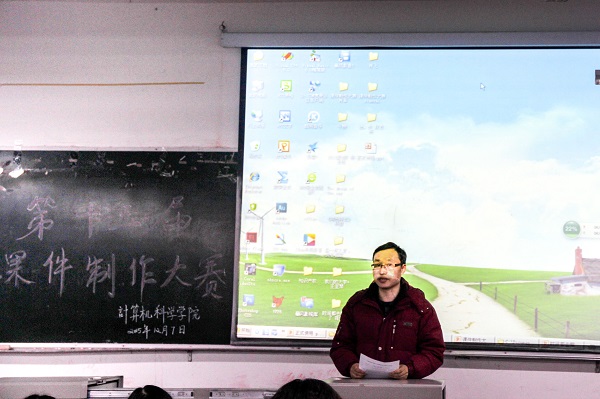为了丰富课余时间,更好地普及计算机知识,开拓同学们的创新精神,提升课件制作水平,公司第十三届课件制作大赛决赛于12月7日晚7点在一教205成功举行。出席此次比赛的评委老师有张凯,袁宇丽,唐春兰,张艳琼,傅荣会以及辅导员李倩倩,吴昊。全体参赛选手观摩了此次比赛。