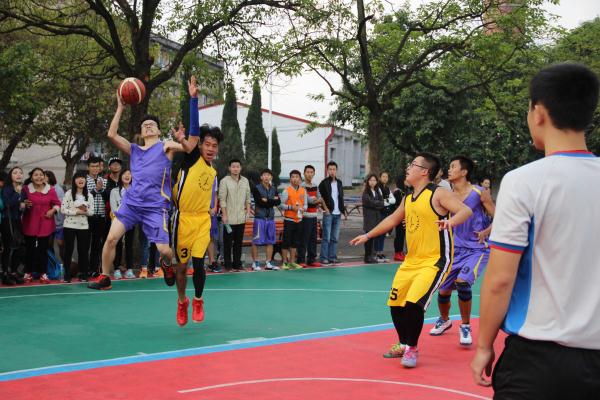 比赛分为多场,参赛的有男生,也有女生。比赛进程中,参赛的女队员们在赛场上充分发挥,挥洒汗水,展示自我。 “巾帼不让须眉”的精神在他们当中体现得淋漓尽致。值得浓墨重彩一提的是10月31日10:00在山腰篮球场三场地举行的计科对地资的比赛。我系女生以26:24比分险胜地资系,同时也充分展现出了女生们赛场上的风采。当然男生队也不示弱,特别是11月1日下午15:00在山腰篮球场一场地举行的计科系对音乐系的比赛。每位队员都全力以赴,积极防守、积极进攻;即使队员有腿负伤,但他们越战越勇,显示了他们极佳的心理素质。比赛中,双方拼抢都很激烈,带球、运球、投篮等一系列动作潇洒、规范,引来围观同学一阵阵地喝彩。场外拉拉队更是热情高涨,欢呼声,呐喊声,声声入耳,让篮球比赛的氛围不断升温。最后,通过全体队员的团结合作扭转了战局,以44:36的比分为我计科赢得了全胜。