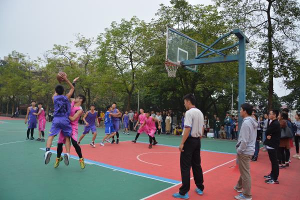 青春是昂扬向上的,青春是活力四射的。经过了多场苦战的篮球赛终于接近尾声。2015年11月9日中午十二点半,计科学院与外语学院在山顶球场演绎着别开生面的篮球决赛。