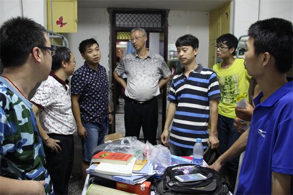 8月30日晚,公司经理刘益和、副经理李尧、党总支书记徐大军、团总支书记李倩倩、党政办主任张瑞、辅导员吴昊以及新生班主任等一行人亲自走访员工寝室。