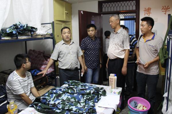 公司共有本科班、专科班:25栋、8栋、2栋、24栋四栋男女生寝室。公司领导分两拨走访男女生寝室。仔细询问他们的入住情况,了解新生来到新的地方在情绪、生活的变化;关注新生的寝室环境、安全等问题,提醒新生谨防寝室安全、人身安全、财产安全等系列问题,特别指出注意寝室上门推销等诈骗手段;最后公司领导在军训生活上做出深切关怀,提醒新生在军训时听从教官的指导、班主任的安排指挥,并在军训期间注意防暑、防晒伤、防跌伤等意外情况。