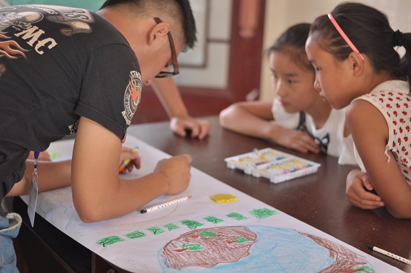 下午,天气比较炎热,志愿者便在教室里为红草村的孩子们播放了电影《冰雪奇缘》,生动的画面,丰富的故事情节让孩子们非常喜欢。而在九间楼村,志愿者们则向孩子们生动形象的介绍了食品安全卫生,尤其是提醒孩子们不能吃过期变质的食品,孩子们听的很认真,相信会收获颇多。