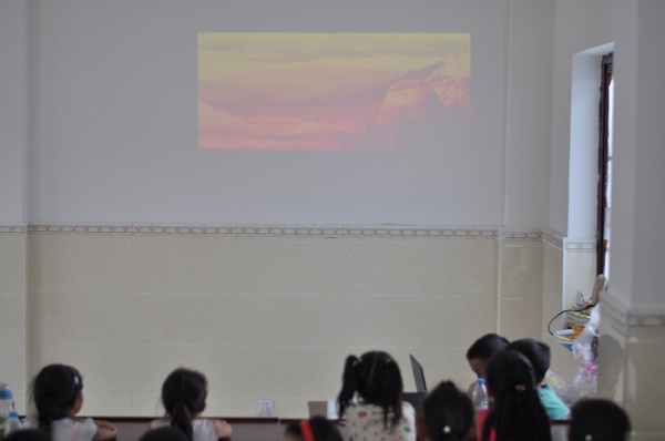 活动进行了一多半了,志愿者们和小朋友们的关系越来越融洽,以前很多不好意思做的事情也在大家的熟悉中完成。这不,上午在红草新村,孩子们自己组织了歌唱比赛,还热情的请志愿者们当评委,让志愿者们第一次看到了红草村孩子们的勇敢和唱歌天赋,既听见了童真,悦耳的童声独唱《小小粉刷匠》还听到了气势恢宏的大合唱《团结就是力量》。而在九间楼村,志愿者则为孩子们准备很长的白纸和颜色各异的蜡笔,带领着孩子们完成了梦想大画卷的绘画,其中最给人留下深刻印象的事二年级的高钰小朋友画的《未来世界》,丰富的想象力让我们佩服不已。