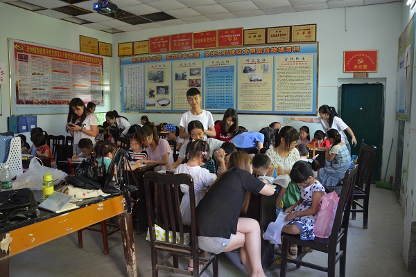 具体的社会实践中,队伍根据采用多种活动结合形式,调研,看望空巢老人,辅导升钟镇周边小孩做作业,在上课之余,又不乏活动,唱歌,折纸,玩游戏等穿插在课堂中,让孩子们劳逸结合。我们活动的顺利开展也得益于当地村民的支持,开始辅导小孩子时,还担心来得少,结果却在意料之外,孩子越来越多,“教室”显然已容纳不下。