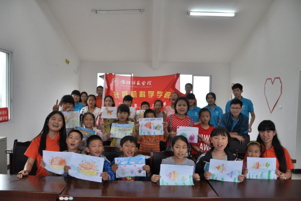 上午9点整,两支分队伍开始了支教活动,在九间楼村的队伍先进行了小组的自我介绍,让孩子们认识到我们支教的队员,然后让孩子们进行自我介绍,起初孩子都有些腼腆,不愿意主动上台介绍,一名队员便伸出手提议与他一起进行介绍,这给了孩子们很大的信心,第一位勇敢者就站到了讲台上,随后由第一位的带动下,孩子们都变得很主动很勇敢,纷纷介绍了自己;之后孩子们与队员一起做了一些活动,看到孩子们的笑脸,队员的心情也是非常愉悦的。另一方红草新村也同时进行了活动,在红草村的教室里,队员们首先为到来的孩子们播放了前两年队伍的支教活动的视频,拉近了与孩子们的距离,接着志愿者们和小朋友们开展了你比我猜活动,极大地考察了队员之间的配合度和熟悉度。随后,志愿者们又在充分考虑小朋友的兴趣爱好后,和他们分组开展了下棋,学习跆拳道,玩小游戏等活动,教室的气氛很和谐。