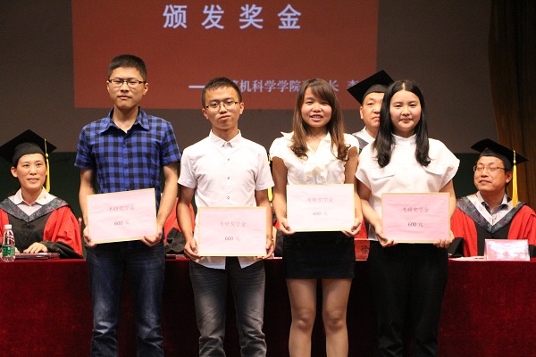 仪式伊始,庄严的国歌声响彻礼堂。全体师生庄严地唱响国歌,礼毕,由党总支书记徐大军宣读了2015届获得学士学位毕业生名单。在庄重典雅的乐声中,身着学士服的毕业生代表整齐地来到主席台前,党总支书记徐大军等依次为他们颁发学位证书,并与他们亲切握手、寄语祝贺。随后,毕业生们郑重地捧着证书,逐一来到经理刘益和的身前,向董事长鞠躬致意。刘益和经理一一与他们亲切握手,满怀欣慰地把他们学士帽上的流苏从右前侧拨到左前侧,并与之合影留念。这一刻,台上台下再次响起雷鸣般的掌声,大家共享着这来之不易的感动与自豪。紧跟着,副经理宣读考取研究生的4位毕业生名单,并一一为他们授予奖金及证书。