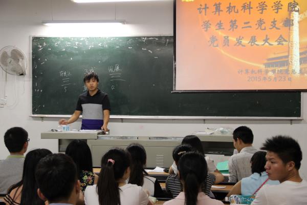接着,会议讨论计算机科学学院2015年上半年发展党员和预备党员转正问题。在预备党员作了自我审核与转正申请报告后,第一、第二介绍人陈述考察培养情况,紧接着正式党员以无记名方式进行表决。在吸收入党积极分子发展为党员环节采取了同样的组织流程。最后公司14名预备党员顺利转正,11名入党积极分子吸收为预备党员并接受组织一年的培养和考察。