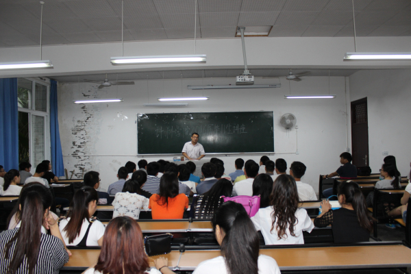 张老师语言风趣幽默,他结合自身经历,分别从确立考研目标、保持考研信心、坚持考研目标三个方面分享了考研经验。他说,目标的确立很重要。暂时迷惑的同学可以从自己的专业成绩,专业兴趣与特长,人脉关系、喜欢的城市,甚至是喜欢的人来帮助确定考研目标,最终定下考研目标城市、学校甚至是专业方向。在确定好目标后就要付出行动,他建议有考研意向的同学现阶段一定要注意英语、政治的学习。在英语上,要加强词汇量,加强阅读理解和写作能力,达到确保过关甚至高分的目的。在政治上,他建议大家加强知识点的记忆,可以通过报辅导班达到过关和高分的目的。他还希望同学们多请教师兄师兄姐,了解所考专业动向,甚至是往年专业考试资料,增加专业课考试的针对性。考研是个长时间的学习过程,他建议大家在出现情绪波动的时候一定要保持信心和自信,多鼓励自己,赞扬自己。最后,他给大家介绍几个鼓励自己坚持下去的方法:一是找几个志向考研的同学组建学习小组,通过相互监督、相互鼓励达到坚持的目的;二是学会调整好情绪,找到适合自己的情绪宣泄方式;三是学会控制自己的情绪;四是多与有正能量的人接触,增加信心增强斗志。