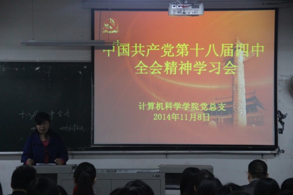 通过十八届四中全会精神专题学习,计科师生进一步学习、理解了依法治国的重大意义,同时也让大家对依法学习,依法从教有了更清楚的认识,提高了大家的思想政治水平,从而为法治中国做出更多更大的贡献!