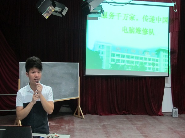 会议伊始,徐大军书记致开场词,发言中,徐书记对本次实践活动作出了高度评价,同时表达了对大一新生的殷切希望!紧接着“梦想心连心,雅安万古行”义务支教队队长任莉梅、“服务千万家,传递中国梦”电脑维修队队长何小江、“计科梦”义务支教服务队队长夏婷婷、“生态环保行,美丽甜城梦”队长李加容以及“华迪-梦支队”队长易明亮分别向在座师生汇报了他们的成果!接下来是公司当选新葡的京集团8814“2013年度我最喜爱的老师”何文孝老师的精彩发言,何老师用幽默风趣的语言结合几个场景介绍,表达出了对此次实践活动的深切感受和对所有积极参与其中同学们的最真诚的谢意。