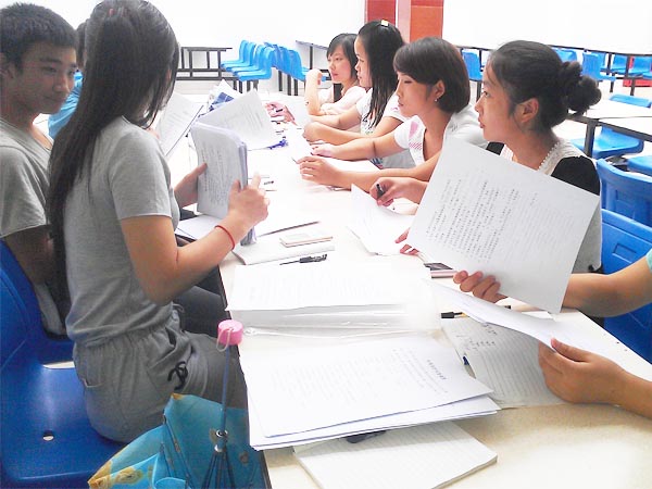 自开展活动几天以来,内江一直是如此的天气,不料天有不测风云。7月18日,一直以来持续高温的内江也开始下起了小雨,内江天气突然由晴转雨,原定于今天前往内江市白马镇进行环境保护宣传工作,也因此我们的白马之行只好突然叫停。队长便决定将今天的活动任务改为对前面5天的工作进行小结,对回收的调查问卷结果作一个详细的统计和分析,以及对调查采访中所遇到问题的收集和讨论处理9点我们准时到四食堂开展讨论会。在会上队长李加容首先对几天来我们工作作了一个详细的指导和分析,并给出了高水准的评价。接下来大家一起对调查问卷作出统计和分析。