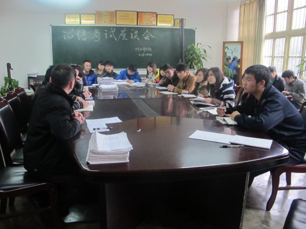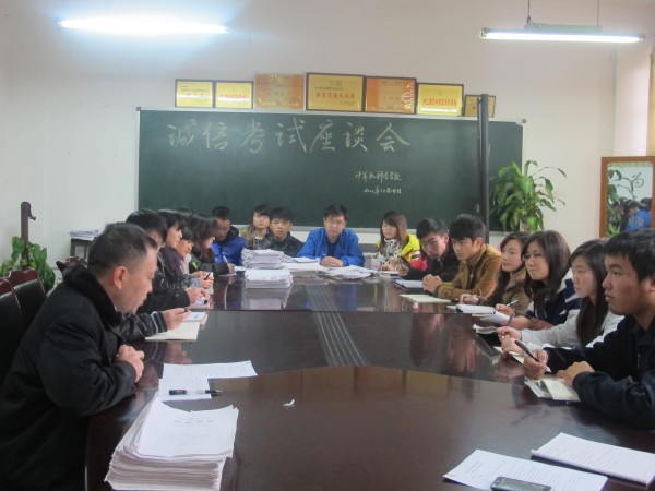 为严肃考风考纪,弘扬诚信考试的良好风气。12月14日上午9:40计科公司党总支副书记徐大军于学院会议室主持召开了诚信考试座谈会。学院各班班长及学习委员均参加了此次会议。