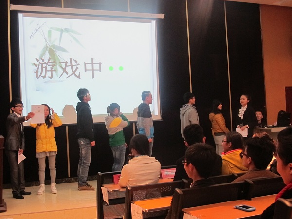 游戏环节二——传递猜词,现场观众互动的姿态动作搞笑雷人。最后,全场合唱《歌唱祖国》,经过半个小时的精彩演出,在爱国声中观摩会画上了圆满的句点。