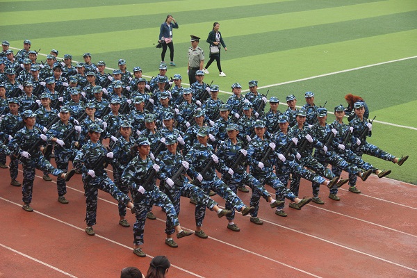 下午2点30分,大会正式开始。公司党总支书记徐大军,经理刘益和出席此次汇报会。在庄严的升旗仪式后,伴随着雄壮的分列式进行曲,各方队踏着豪迈的步伐,精神抖擞地走过主席台,接受主席台领导的检阅。公司学子那坚定有力的步伐、整齐划一的动作和威武飒爽的英姿,赢得了与会领导的阵阵掌声。分列式结束后,又进行了表演方队展示。其中,由公司学子加入的单兵战术及擒敌拳表演,反恐战术表演,朗诵表演,队形变换方队等接踵而至。充分展现了公司员工的朝气与活力。最后,全体新生共同演绎《感恩的心》,以一支手语舞表达了对教官以及学校领导、老师的感恩之情。