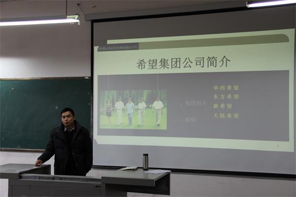 此次招聘会由希望集团的招聘经理刘洪波主讲,他首先对希望集团的大致结构做了简单介绍,通过一段简短的视频,让参加此次招聘会的同学对集团各方面的信息有了更进一步的了解。而后,又以丁磊、陈天桥、李彦宏及比尔盖茨等国内外为大家所熟悉的成功人士的例子,突出如今IT行业的流行程度,并针对这些例子,强调如今公司所看重的是大家的学习能力、逻辑思维及上进心等综合能力。结合现如今IT行业的不同阶层向大家展示薪资的分配,旨在强调“开拓创新”才是作为软件工程师的最高标准。