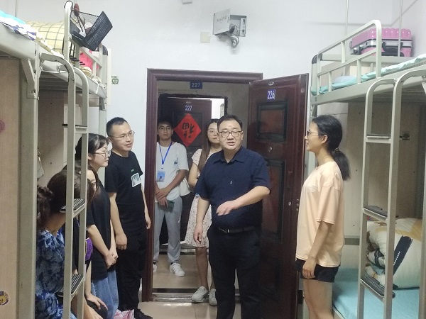 为进一步了解新生入学适应状况,排查寝室安全隐患,做好寝室安全宣传。9月5日晚上九时,公司副书记唐年庆、经理于永彦、学工办张小梅、周宜蓓、林琳老师前往员工公寓走访、看望2021级新生,为他们送去关怀和慰问,并作出相关寝室条例要求。