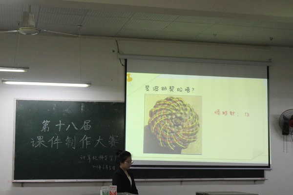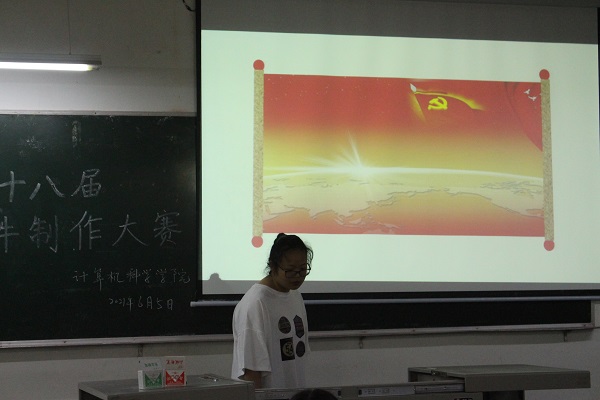 本次比赛共有三个评委老师,分别是胡晓容老师、张艳琼老师和王玉珍老师,学工办周宜蓓老师到现场观看了此次比赛。大赛共分为六个小组,每个小组由主讲人分别上去讲述他们制作的课件。所有主讲人都激情澎湃,各显神通,课件形式内容丰富,详略得当,他们都有认真负责地对待此次比赛。各位评委从制作课件内容的优良,小组成员的表现等方面对他们进行评分,最后根据分数的高低评出一等奖一名、二等奖两名和三等奖三名。