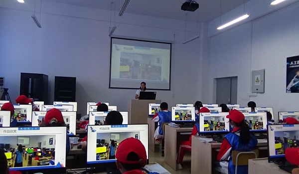 课后,初一1班一连队有个男生对胡晓容老师说:“这是我第一次学编程,原来以为编程很难学,很高大上,没有想到编程这么好玩有趣!胡老师,明天你还给我们上编程课吗?”