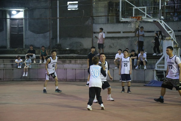比赛于当天晚上7点开始,由钟孟圣、杜强、王元、彭宇、晏和江等员工为代表的毕业队对阵以现计科篮球队队员为代表的欢送队。比赛伊始,双方队员们迅速投入其中,赛场上的球员个个雄姿英发,你争我夺,一轮又一轮的进攻,动作潇洒,帅气利索。比赛进行得如火如荼,双方队员情绪高涨,现场观众也为他们欢呼呐喊。他们在场上演绎着精彩的篮球比赛,留下一段美好的大学时光。这场比赛并没有像以前一样严格地讲究技战术,更多是营造一种轻松愉悦的氛围。比赛最后,毕业联队率先获得100分,获得胜利!